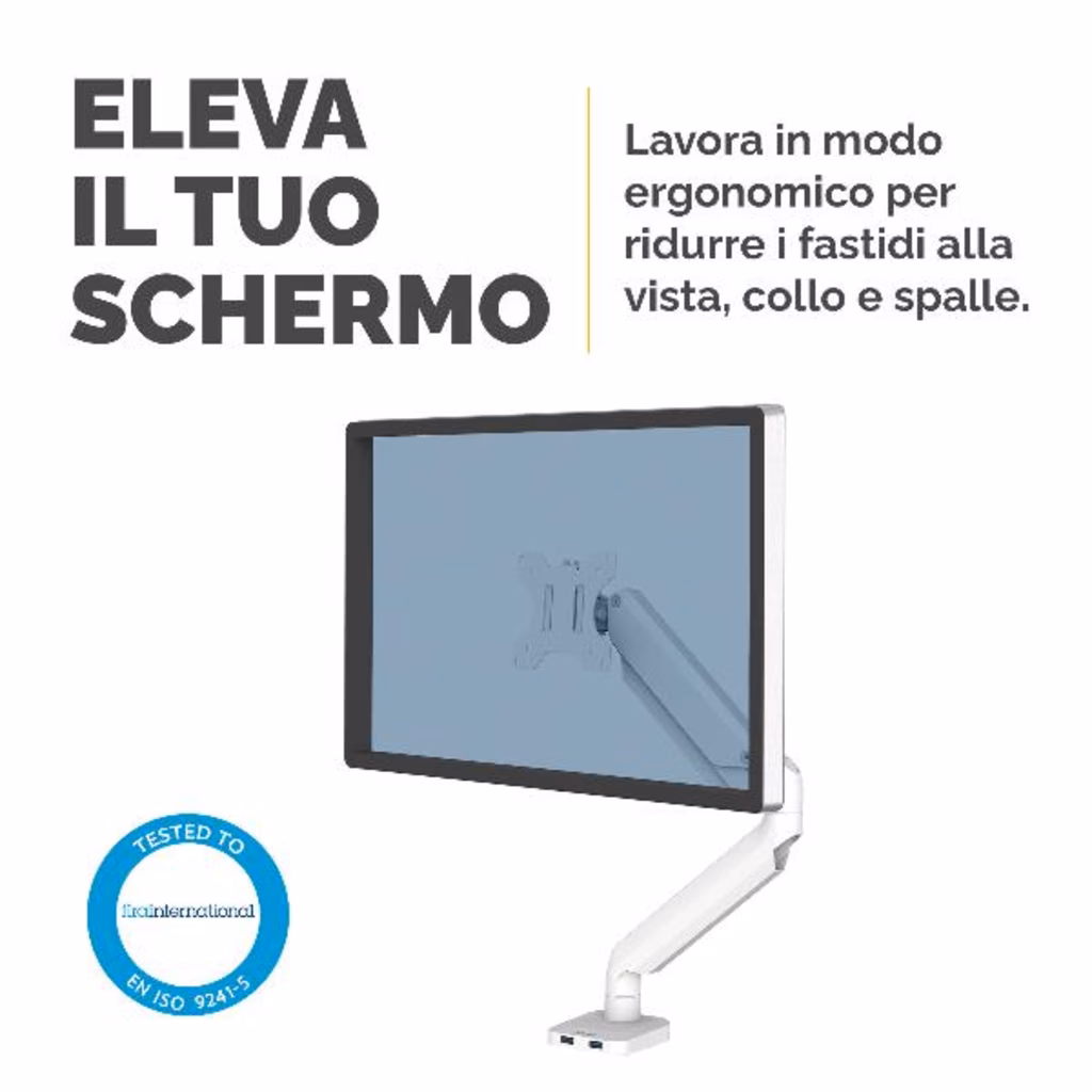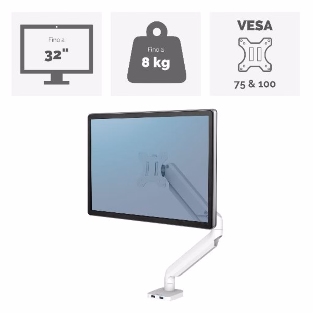 Braccio monitor FELLOWES singolo PLATINUM Series colore bianco - fino a 32"