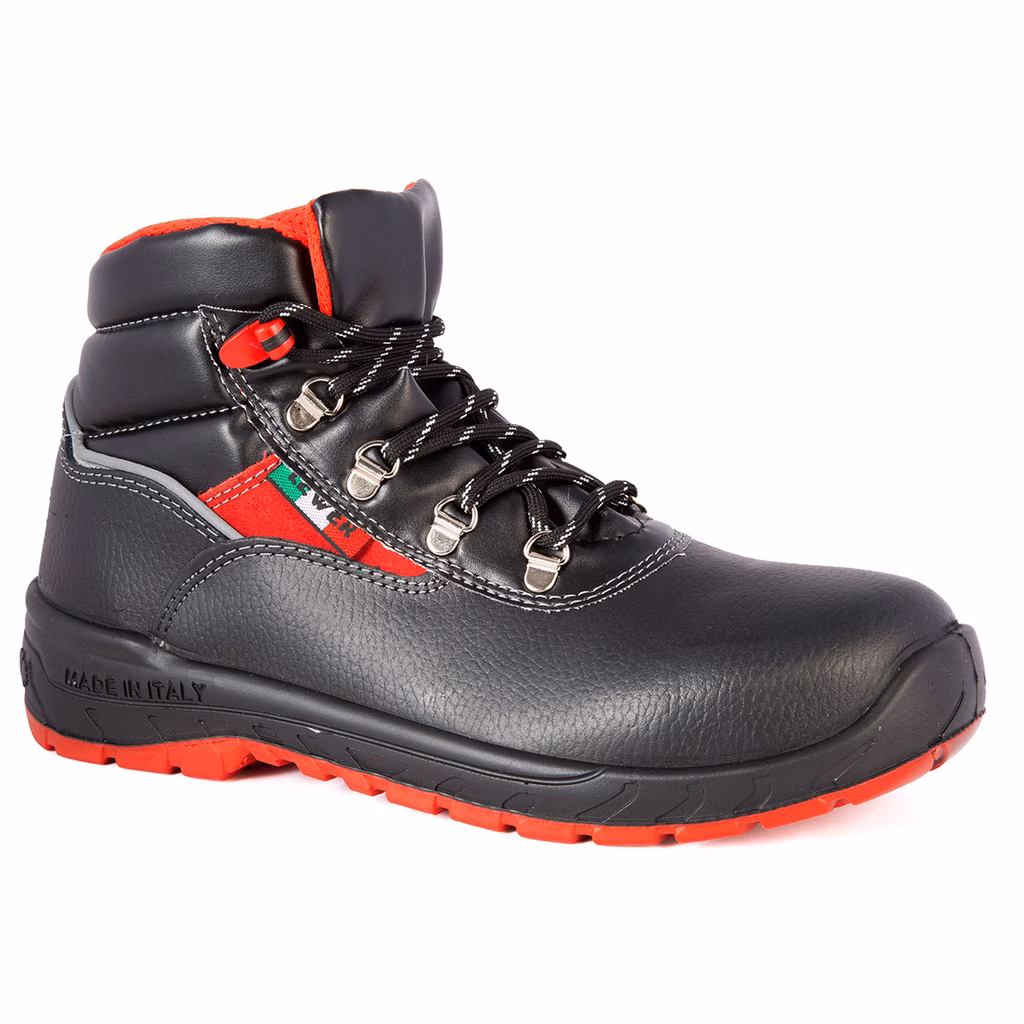 Calzatura di sicurezza alta in pelle fiore con inserto reflex sul tallone - sfilamento rapido - tomaia idrorepellente - fodera in tessuto traspirante e resistente all'abrasione - puntale e lamina in composito - soletta di pulizia termoformata e estraibile su schiuma EVA - suola in poliuretano - calzata comoda e larga (Mondopoint 11) - peso per la mis. 42 g 590 - IDEALE PER INDUSTRIA PESANTE, EDILIZIA, GESTIONE RIFIUTI