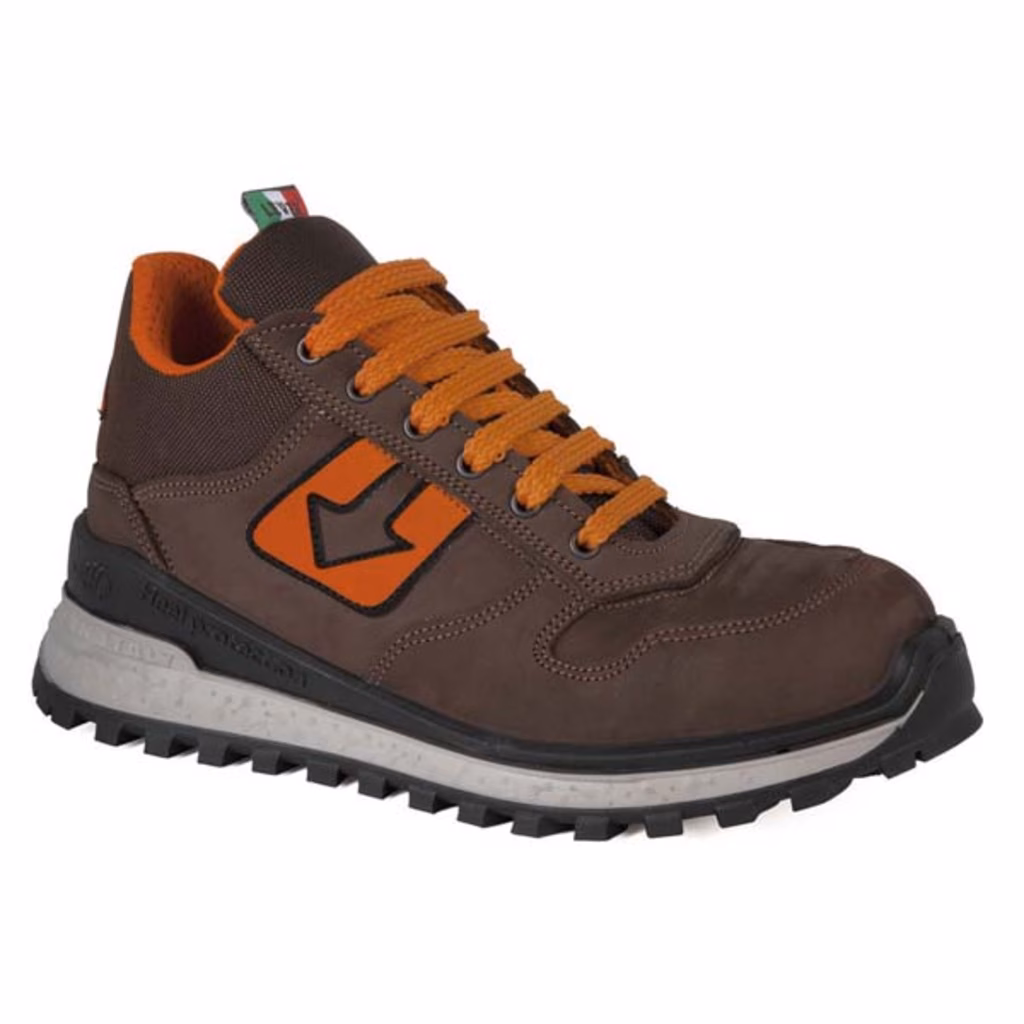 Calzatura alta in pelle nabuk. Puntale in alluminio, lamina in tessuto e plantare Eva Light. Suola tre densità: battistrada in gomma , strato intermedio Air 130 che si estende su tutta la superficie del piede, garantendo confort ed elevato assorbimento di energia, Poliuretano espanso iniettato su tomaia, progettato per una maggiore protezione del tallone, Heel Protection.