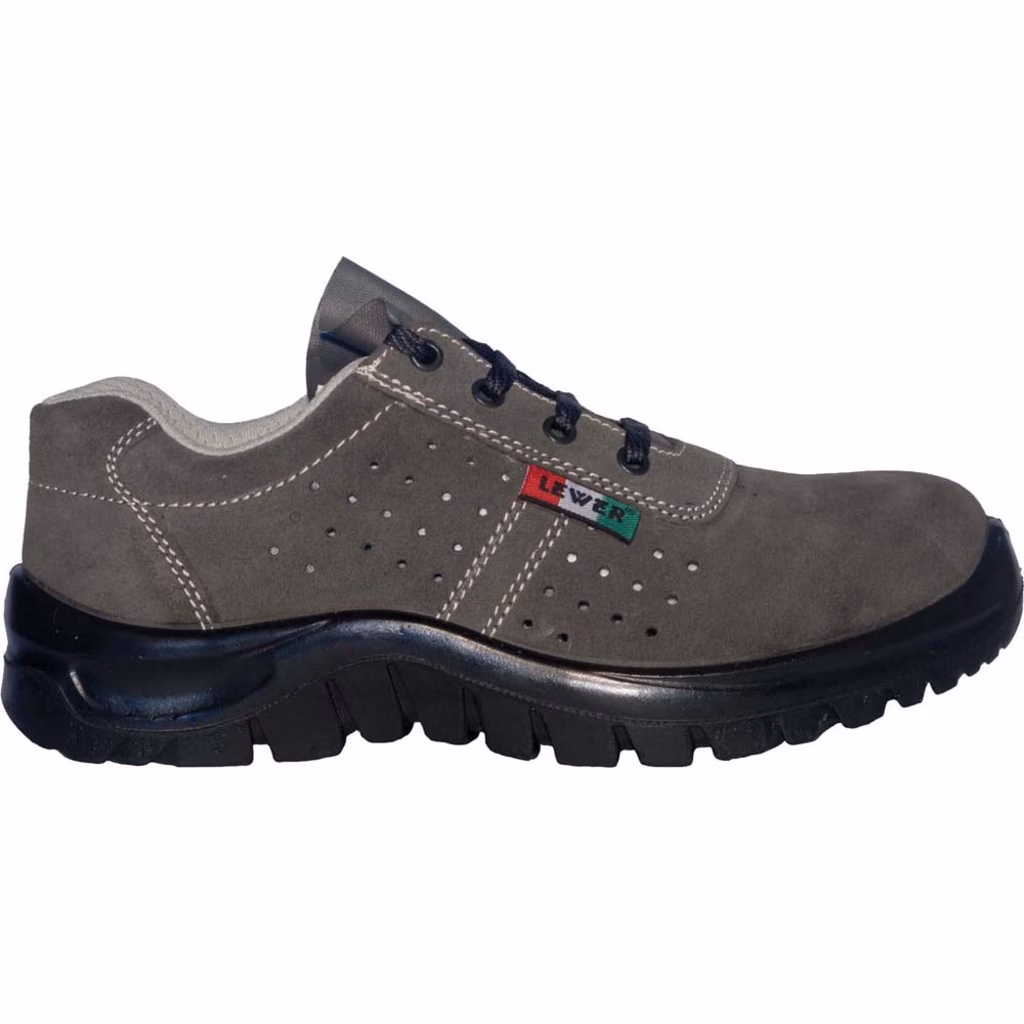 Calzatura di sicurezza bassa in pelle scamosciata forata - fodera in tessuto traspirante e resistente all'abrasione - puntale e lamina in acciaio - soletta di pulizia termoformata e estraibile su schiuma EVA - suola in poliuretano - calzata comoda e larga (Mondopoint 11) - peso per la mis. 42 g 580 - IDEALE PER SUPERMERCATI, MAGAZZINO, INDUSTRIA LEGGERA, EDILIZIA, ARTIGIANATO
