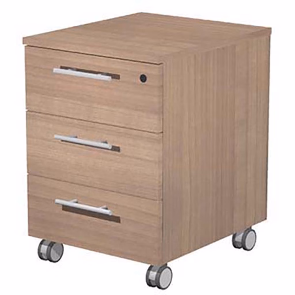 Cassettiera tre cassetti. Top, base, fianchi e frontalini sp. 18 mm. Dietro spessore 10 mm. Cassetti con maniglie in metallo. Guide metalliche con fermo a fine corsa. Completa di serratura sul primo cassetto e ruote pivotanti. Fornita montata. Colore: Ciliegio arabis