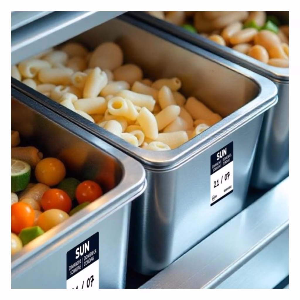 Etichette alimentari giornaliere, con adesivo rimovibile, rotolo da 1.000 etichette - essenziali per la gestione dell'inventario nei ristoranti, consentono di tracciare con precisione la data di preparazione o apertura del cibo, grazie a un codice colore giornaliero, il personale può identificare a colpo d'occhio quali prodotti utilizzare per primi, questo aiuta a limitare gli sprechi alimentari e garantisce una rotazione ottimale degli alimenti - queste etichette promuovono anche il rispetto degli standard HACCP facilitando il tracciamento delle date di preparazione e di scadenza facili da applicare e rimuovere, si adattano a tutti i tipi di contenitori: scatole, vassoi, sacchetti.