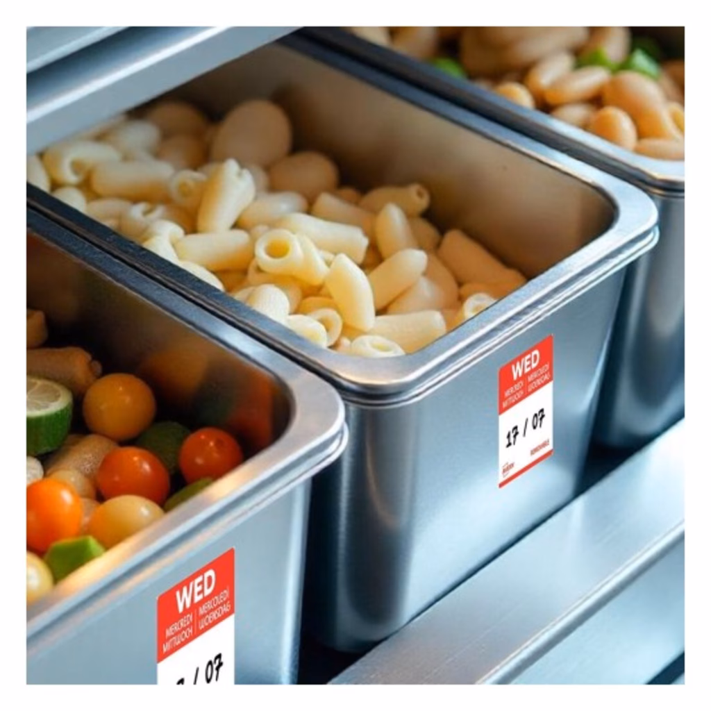 Etichette alimentari giornaliere, con adesivo rimovibile, rotolo da 1.000 etichette - essenziali per la gestione dell'inventario nei ristoranti, consentono di tracciare con precisione la data di preparazione o apertura del cibo, grazie a un codice colore giornaliero, il personale può identificare a colpo d'occhio quali prodotti utilizzare per primi, questo aiuta a limitare gli sprechi alimentari e garantisce una rotazione ottimale degli alimenti - queste etichette promuovono anche il rispetto degli standard HACCP facilitando il tracciamento delle date di preparazione e di scadenza facili da applicare e rimuovere, si adattano a tutti i tipi di contenitori: scatole, vassoi, sacchetti.