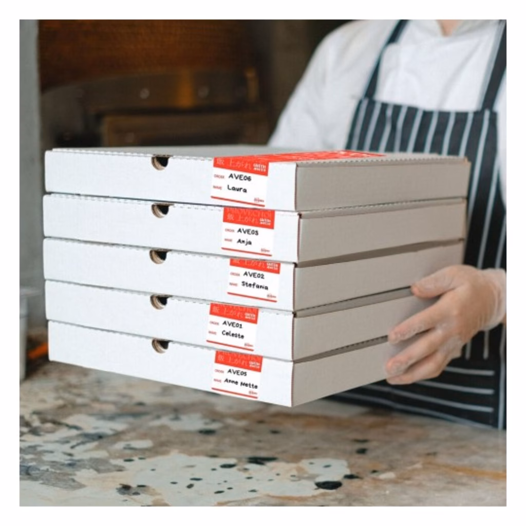 Le etichette sigillo 40x95 mm, con adesivo permanente, rotolo da 250 etichette, garantiscono la sicurezza e l'integrità per la consegna a domicilio degli ordini di ristoranti e supermercati - garantiscono al cliente che l'ordine non venga aperto o manomesso durante il trasporto - facili da applicare, aderiscono saldamente a tutti i tipi di sacchetti o confezioni, in carta o plastica, in caso di tentativo di apertura del sacchetto, l'etichetta si strappa, segnalando eventuali manomissioni, consentono inoltre di organizzare gli ordini in modo più efficiente, indicando il numero d'ordine o il nome del cliente.