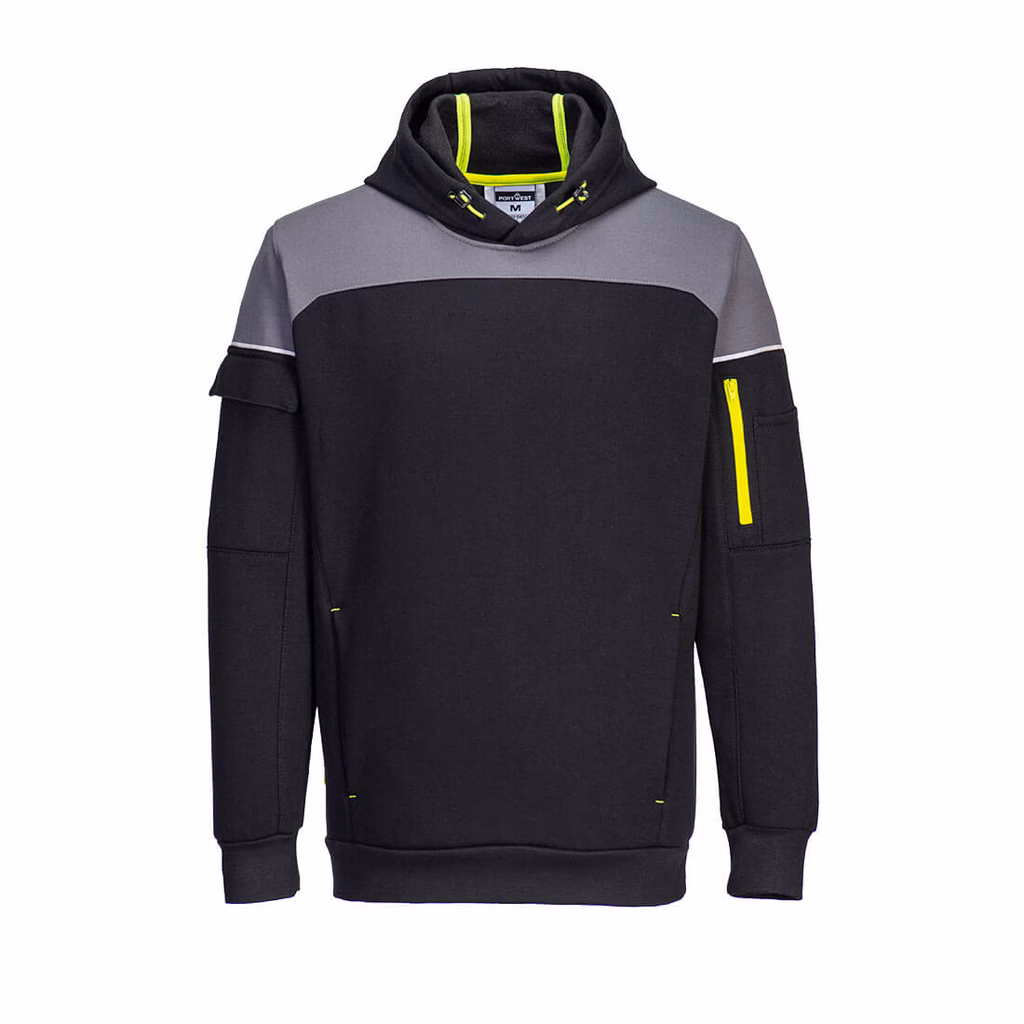 La felpa Pull over con cappuccio PW3 abbina uno stile moderno a dettagli tecnici per creare un comodo complemento alla nostra gamma di felpe. Il pull over consente di indossarla e toglierla facilmente in ambienti di lavoro frenetici. - Tessuto a maglia con retro spazzolato - 5 ampie tasche - Tasca sulla manica - Cappuccio per una maggiore protezione - Tasca porta penne e cellulare - Polsini a costine per calore e comfort - Orlo a costine per una vestibilità comoda - Stampa riflettente per maggiore visibilità e sicurezza - Cerniere a contrasto premium per uno stile aggiuntivo - Cordino regolabile per una sicura vestibilità