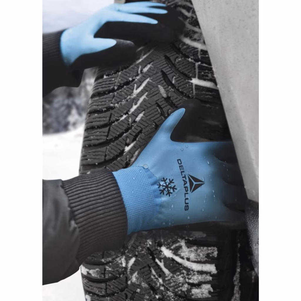 Guanto in acrilico/poliammide - interno : 100% acrilico finezza 10 - esterno : 100% poliammide 15 aghi - palmo e dorso coperto di lattice - spalmatura schiuma di lattice su palmo e punta delle dita - doppio rivestimento completo in lattice: 1° spalmatura liscia in lattice: impermeabile 2° spalmatura schiuma di lattice: buona adesione - ottima resistenza al freddo ed all'umidità Ideale per ambienti freddi fino a -30°C - supporto acrilico felpato - mantenimento del calore durante i lavori all'aperto - elevato comfort operativo