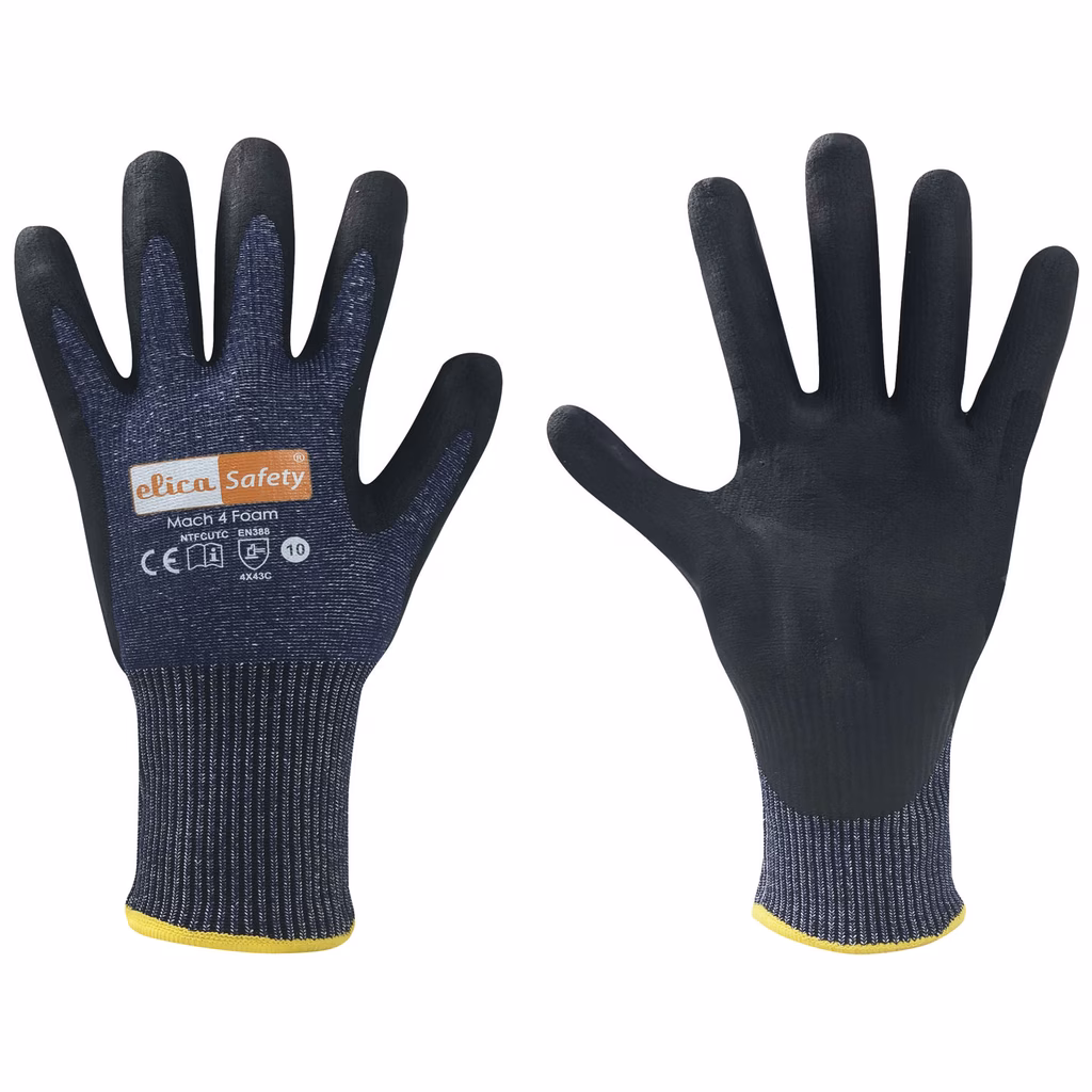MACH 4 FOAM è il nostro guanto Cut Level C con tecnologia di rivestimento Breathtech. L'innovativa fodera interna lavorata con una maglia in filato MetalQ di 13 aghi offre grandi vantaggi nella destrezza. La tecnologia di rivestimento consente a MACH 4 FOAM di respirare attraverso le micro schiume sul palmo e quindi lo rende super comodo da indossare a lungo con un ottima presa durante la manipolazione di pezzi grassi e unti.