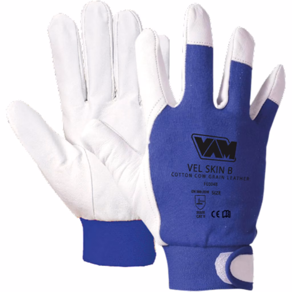 Guanto in pelle fiore bovina modello driver realizzato con pellami di prima scelta - dorso in maglia di cotone elasticizzato - polsino regolabile con velcro - resistente abrasione - maggiore traspirabilità grazie al dorso in cotone - è utilizzato nella protezione contro i rischi meccanici di varia natura ed è adatto per lavori in ambito industriale - di manutenzione - pulizia impianti - agricoltura e fai da te