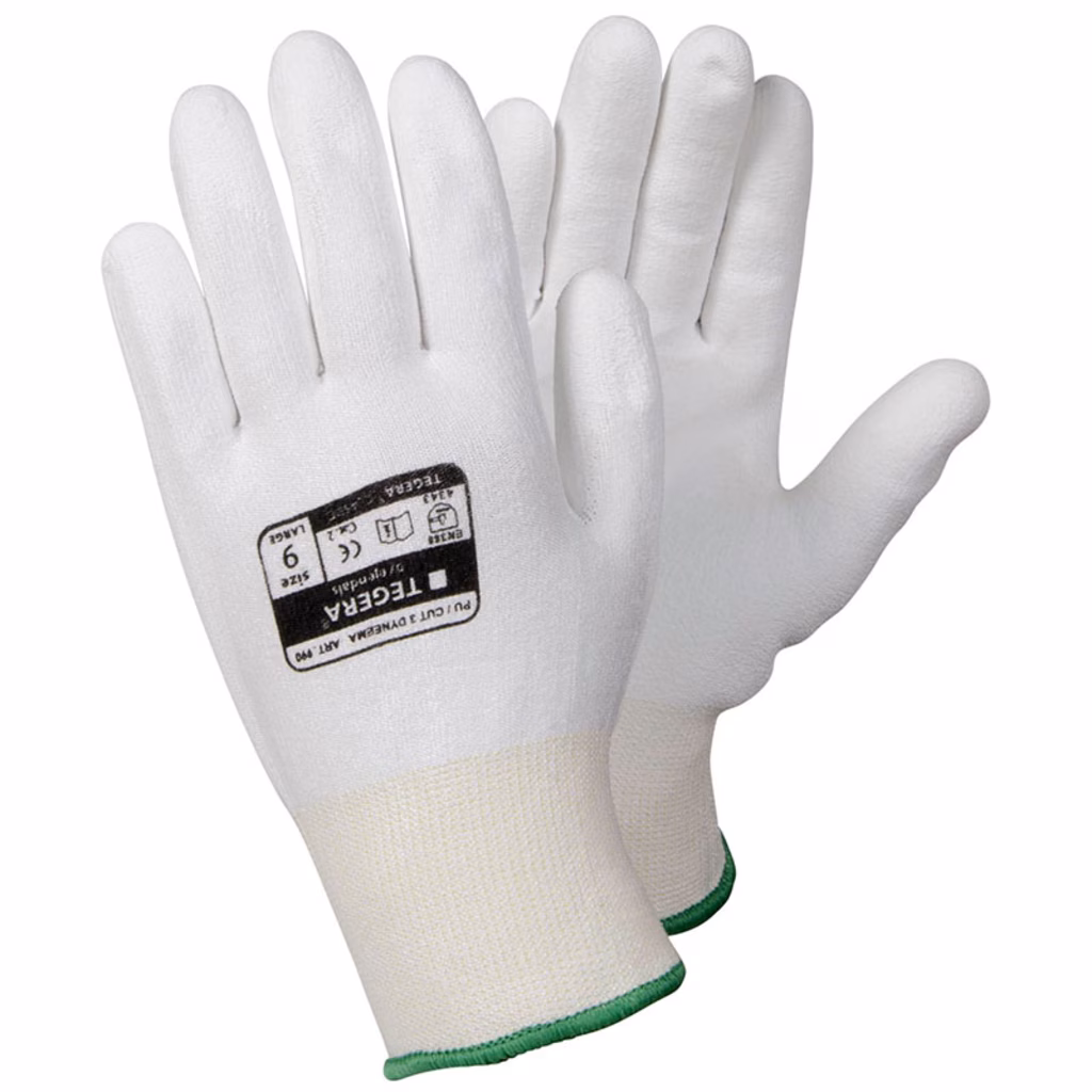 TEGERA® 990, Guanto resistente al taglio, PU, rivestito fino al palmo, Dyneema®, Lycra®, 13 aghi, finitura liscia, livello 3 di resistenza al taglio, livello B di resistenza al taglio, Cat. II