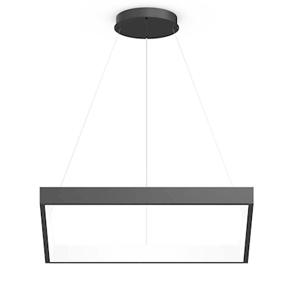 Corpo illuminante quadrato in alluminio - verniciatura a polvere - sospeso con cavo a sospensione - regolazione altezza senza utensili - cavo di alimentazione trasparente incluso - alimentatore elettronico montato nel rosone - diffusore satinato in PMMA ad illuminazione assolutamente omogenea - emissione verso l'interno - emissione diretta/indiretta per maggiore accentuazione del soffitto e migliore comfort visivo - LED ad efficienza energetica con elevata resa cromatica - rosone con 2 ingressi cavi e morsetto per cablaggio passante