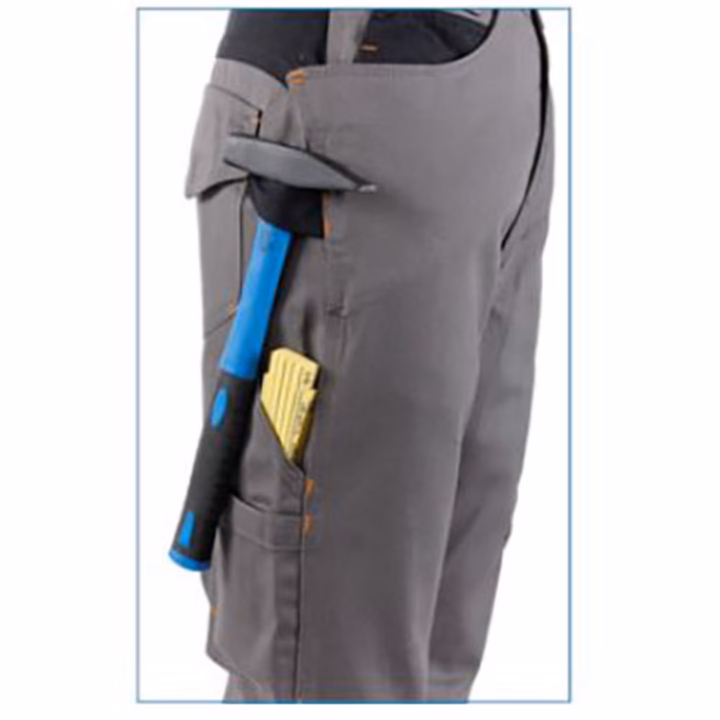 Pantalone invernale foderato, bicolore multitasche con cuciture a contrasto, elastico in vita e soffietto alle ginocchia per unottima vestibilità, cerniera coperta, cavallo rinforzato, due taschee taschino portamonete davanti, due tasconi posteriori di cui uno chiuso da pattina con velcro, tascone con pattina chiusa da velcro su gamba sinistra, tasca portametro con taschino supplementare chiuso da velcro e passante portamartello su gamba destra - composizione tessuto: 100% cotone