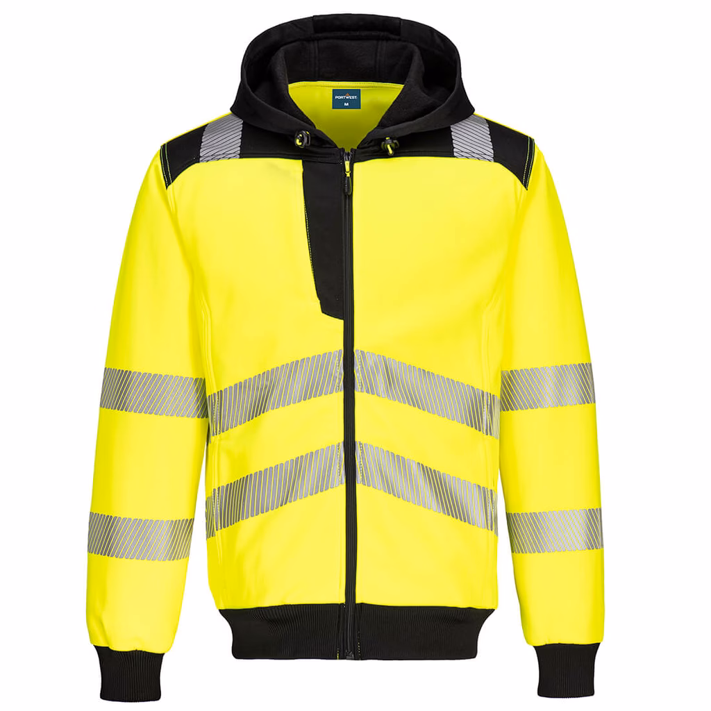 Pw3 felpa con cappuccio hi-vis PORTWEST PW327 colore Yellow/Black taglia M