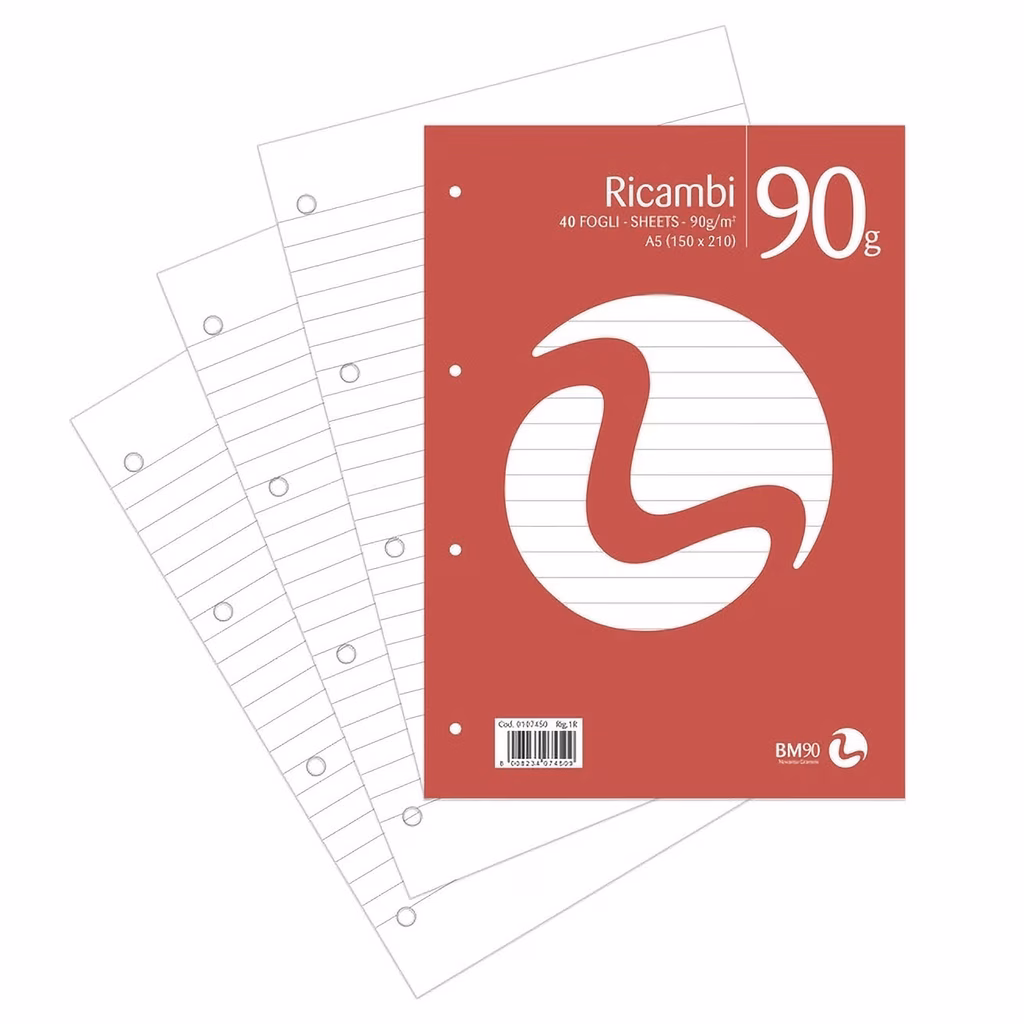 Ricambi fogli 4 fori A5 g90 righe ff 40