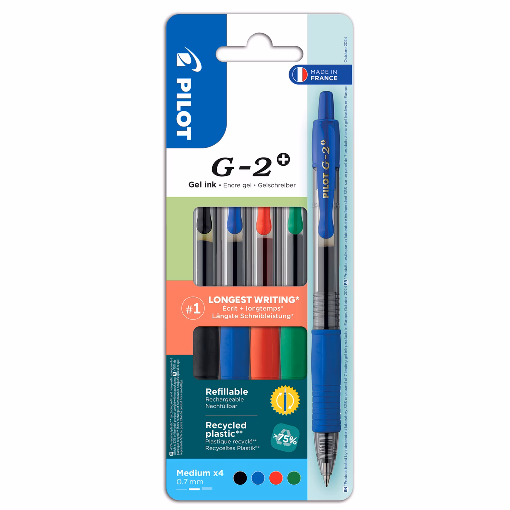 Roller ink gel a scatto colore assortiti PILOT G-2 plus punta fine mm 0,7 - 4 pezzi