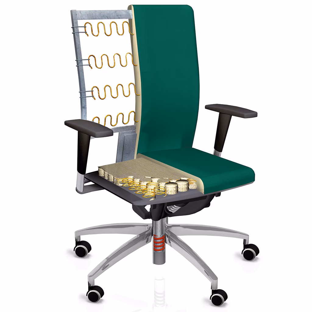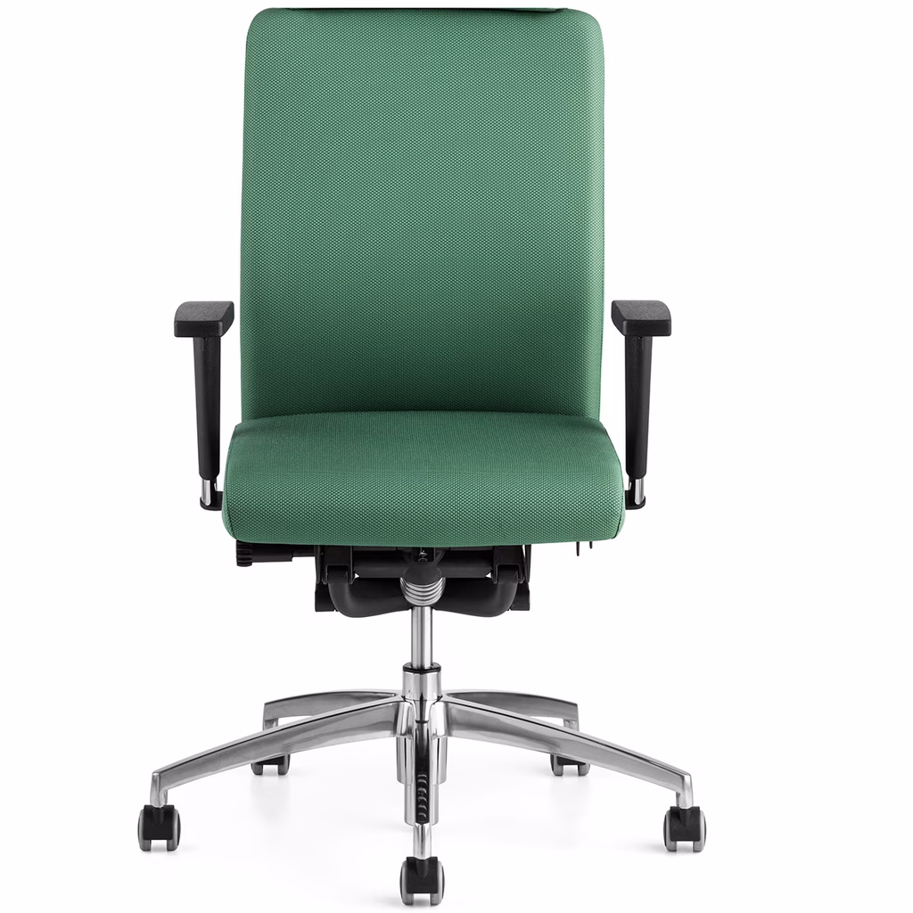 Comoda, solida, ecologica 24 ore su 24, 7 giorni su 7 - Ad ogni cambio di turno, dopo aver lavorato a ciclo continuo per otto ore, Crono 24/7 accompagna e accomoda un nuovo ospite, che non solo modifica l'altezza di sedile e braccioli, ma puntualmente adatta alle proprie personali esigenze anche la resistenza dello schienale e la profondità di seduta - SCHIENALE: alto regolabile in altezza con regolatore lombare. Imbottito con spugna in poliuretano espanso che lo rende indeformabile schiumato a freddo - SEDILE: con struttura in polipropilene caricato in fibra di vetro con una spugna in poliuretano espanso indeformabile schiumato a freddo con all'interno 64 molle imbustate singolarmente per impedire lo sfregamento e renderle silenziose - MECCANISMO: SynchroTek che consente l'inclinazione di 26° dello schienale e di 10,5° del sedile. Completo di regolazione dell'intensità di oscillazione sullo schienale per adattarsi a persone di peso differente, multiblock (5 posizioni), dispositivo di sicurezza antishock, traslatore del sedile di 6 cm e inclinazione negativa di 4,5° - BASE: a 5 razze presso fusa in alluminio con finitura lucida - RUOTE: Gommate auto frenanti Ø 50 mm - BRACCIOLI: regolabili 3D cromati con top poggiabraccia morbido - RIVESTIMENTO: in tessuto ignifugo Cycle (test usura 500.000 cicli Martindale) - Garantita 5 anni per uso H24 - Certificata UNI EN 1335 e Omologata in classe 1IM.