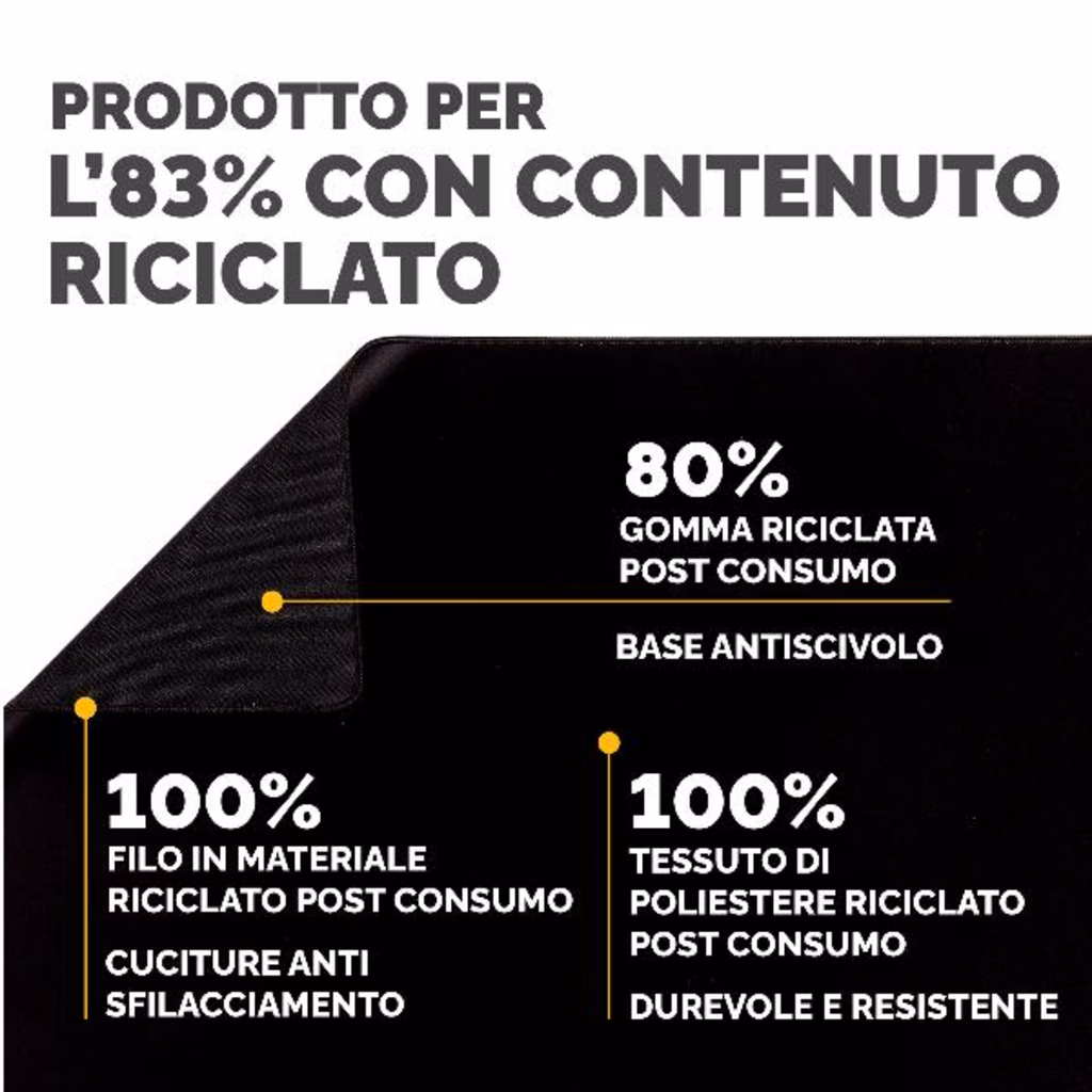 • Realizzato con l'83% di materiale riciclato post-consumo.