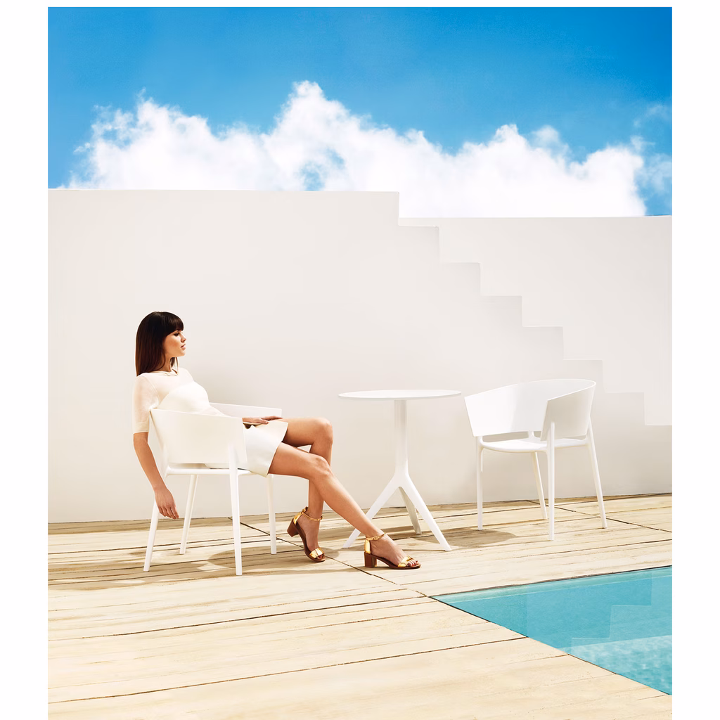MARI-SOL, un tavolo che unisce la tecnologia nella sua funzione con la sensualità nella sua forma. La risposta per adornare le terrazze e i giardini di tutto il mondo. Il tavolo resiste alle intemperie, al mare e al sole. Richiedibile anche in altre dimensioni, può adattarsi a qualsiasi ambiente. Versione fissa proposto in tre colori, adatto per luoghi interni o esterni. Tubolare in estruso di alluminio con basamento in fusione di alluminio verniciato con verniciatura epossidica al forno. Piano hpl sp.10mm nella versione con bordo nero oppure bianco con bordo bianco