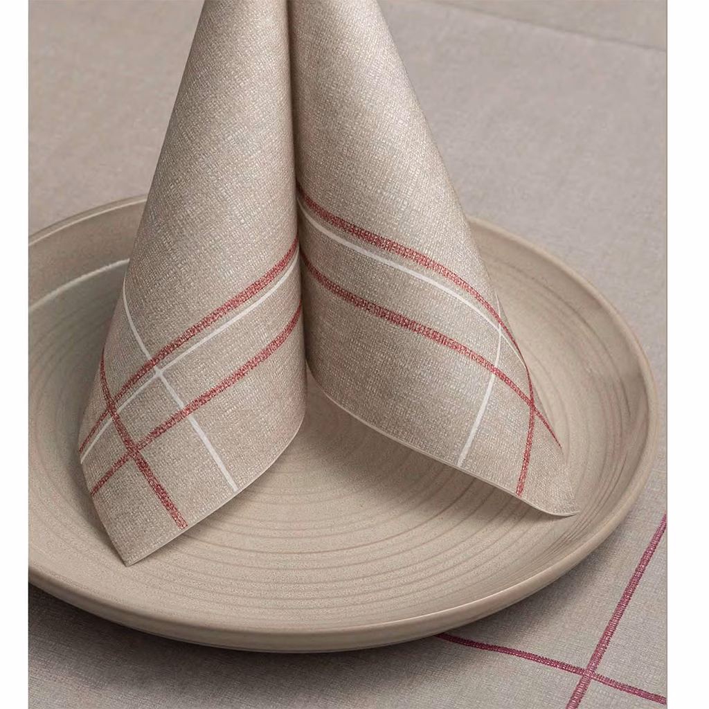 Eleganti tovaglioli in carta a secco di alta qualità e grammatura, materiale di derivazione naturale in cui le fibre di cellulosa sono fissate da un bagno di lattice per ottenere una maggiore resistenza alla trazione rispetto alla cellulosa tradizionale. Nascono all'origine in bianco e vengono poi stampati con un'ottima tenuta del colore, dovuta al forte coefficiente di assorbenza. Estremamente resistenti, morbidi e assorbenti, sono disponibili in diverse tonalità di colore per adattarsi a ogni tavola e a ogni occasione.