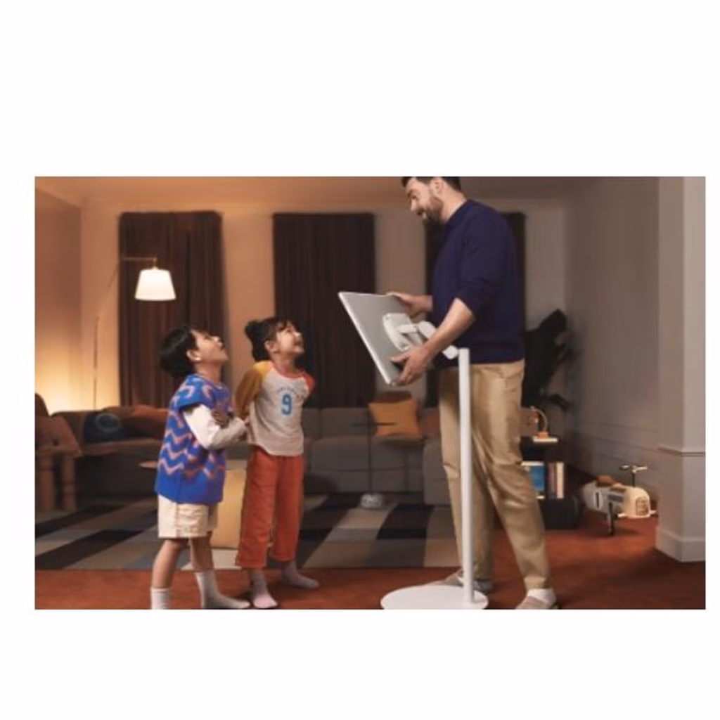 Vivi unesperienza visiva ottimale, ovunque tu sia. Il cavalletto e la batteria integrata di The Movingstyle assicurano una portabilità perfetta, offrendo fino a 3 ore di intrattenimento wireless, ideale per luso in ambienti sia interni che esterni.