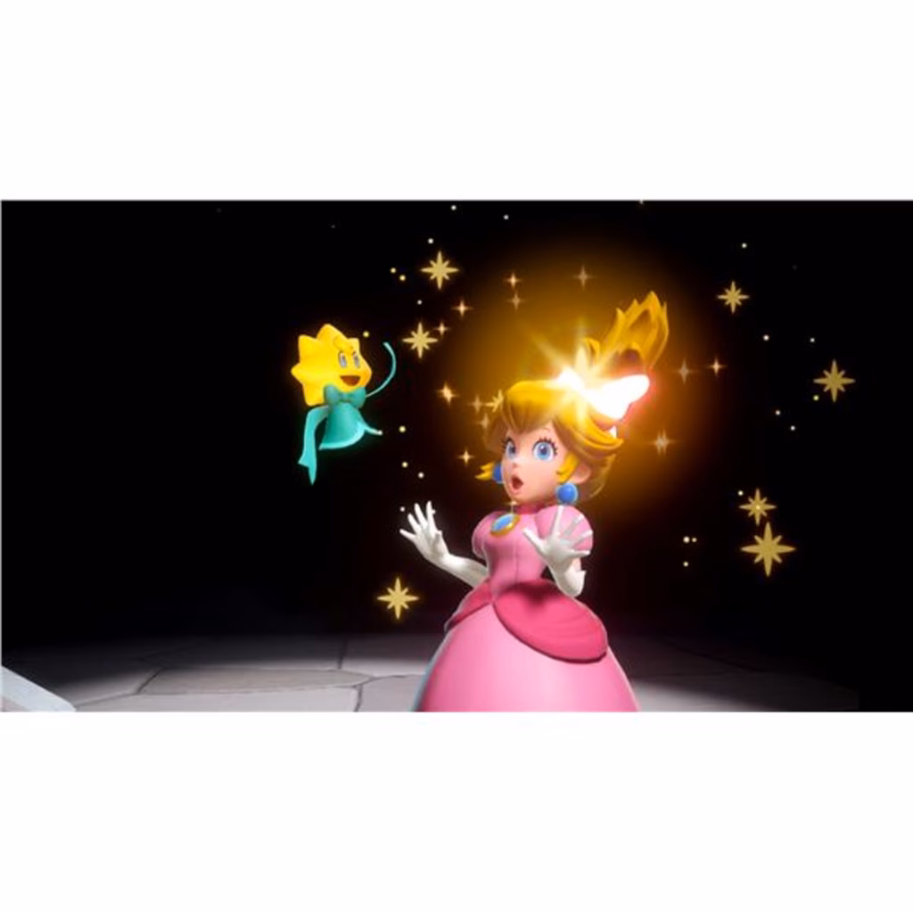 Proprio mentre la Principessa Peach e il suo seguito di Toad si stanno gustando uno spettacolo al Teatro splendente, la malvagia Uva Spina e la Compagnia dei mosti decidono di rubare la scena, scatenando il panico. Adesso tocca a Peach e Stella, la custode del teatro, salvare la recita... e tutto il resto. Per fortuna, Peach può usare il potere del fiocco di Stella e anche trasformarsi! Per esempio, può diventare Peach spadaccina per respingere i nemici con sensazionali fendenti, ricorrere alle arti marziali nei panni di Peach kung fu o evitare conseguenze amare come Peach pasticciera. E non è finita: può anche indagare trasformandosi in Peach detective. In questa avventura, il gameplay cambia in base alle trasformazioni di Peach, che ne includono anche altre non ancora svelate.